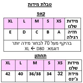 אפשרויות:מידת חזיהמידת תחתוןבקשות נוספות